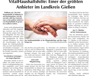 Herzliche Unterstützung für Pflegebedürftige im Landkreis Gießen.